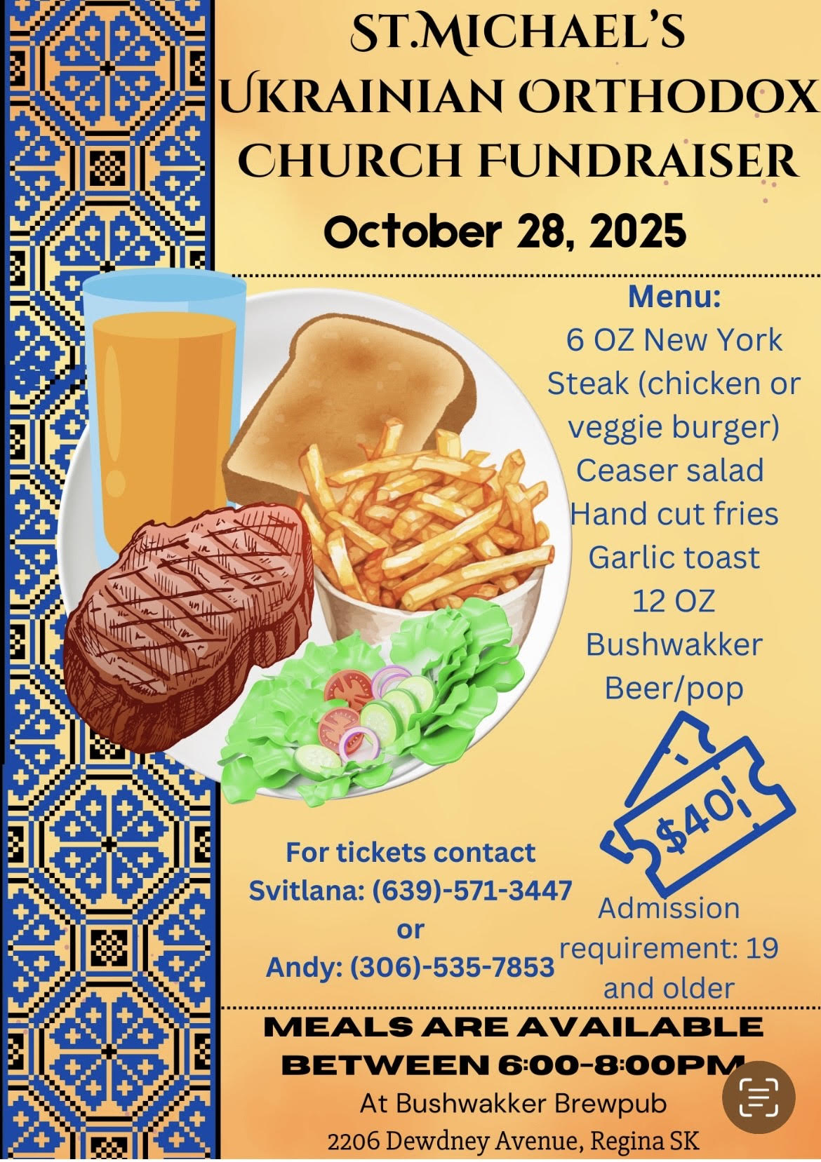ST. MICHAEL'S STEAK NIGHT FUNDRAISER AT BUSHWAKKER BREW PUB ON TUESDAY OCT. 28!
